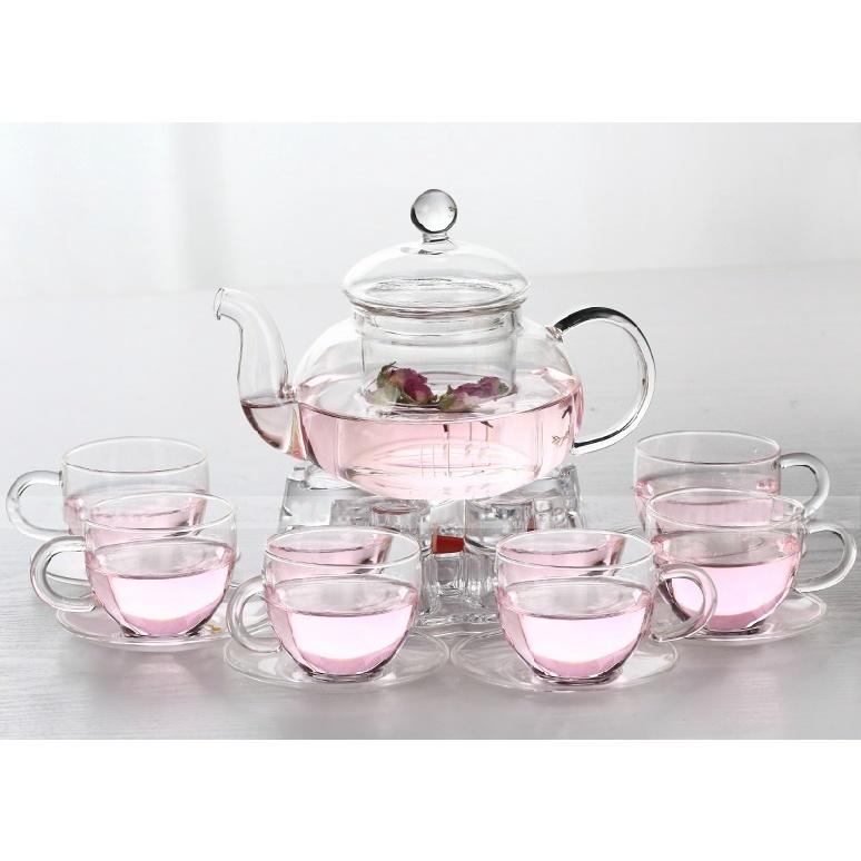 ✨Bộ ấm chén thủy tinh pha trà 600ml kèm 6 đĩa và đế châm nến