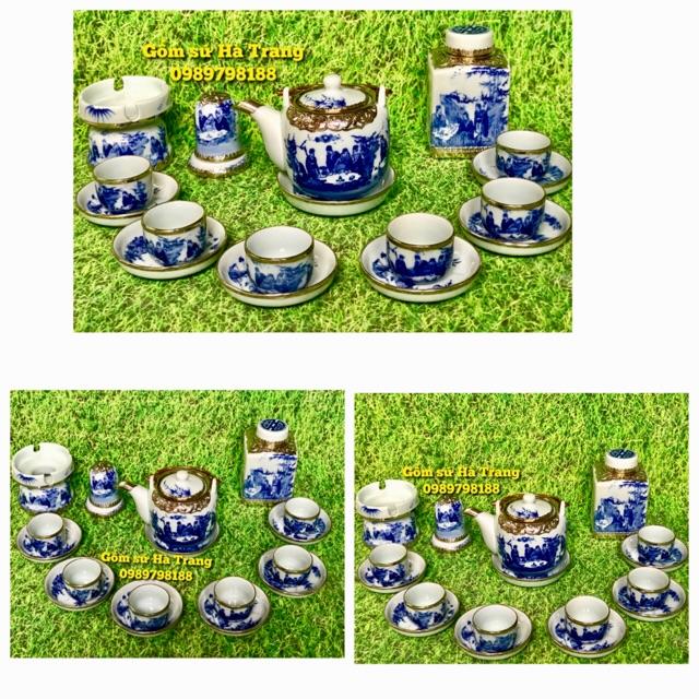 Bộ ấm chén Bát Tràng men lam Trúc lâm thất hiền kẻ vàng kim. #battrang #ấmchén #gốmsứ #battrangcity
