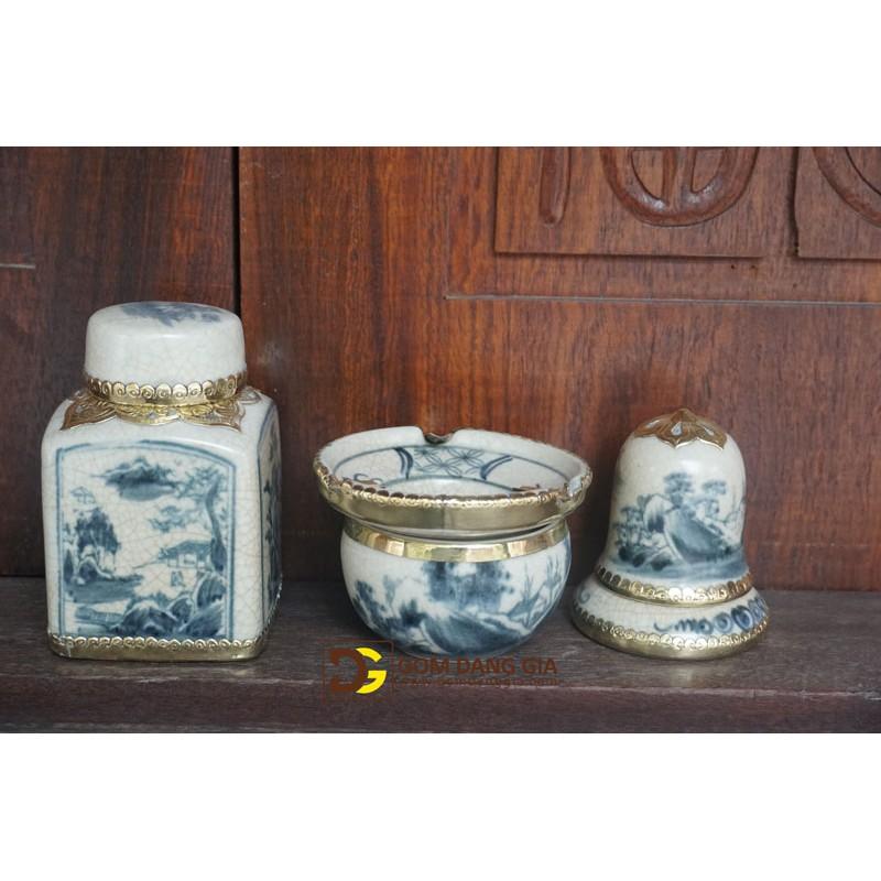 BỘ TRÀ MEN RẠN LÕM VUNG BỌC ĐỒNG BÁT TRÀNG CAO CẤP