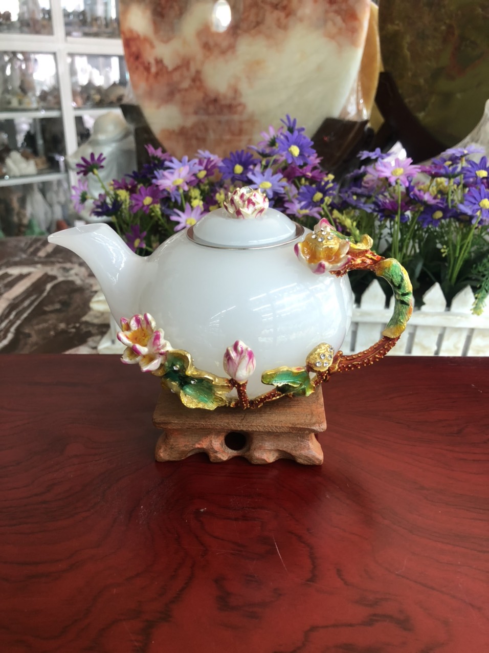 Chất liệu: Đá bạch ngọc Bao gồm: 01 ấm, 06 chén, 1 đế gỗ và hộp đựng cao cấp Kích thước : Dài 36 cm x 25 cm x 13 cm ( Bao gồm hộp