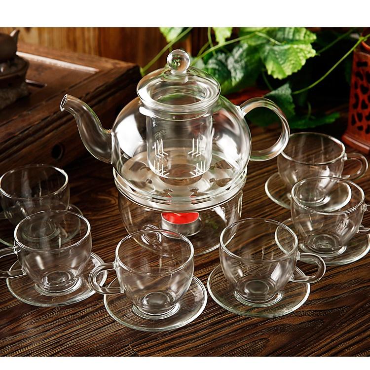 BỘ ẤM TRÀ THUỶ TINH CHỊU NHIỆT CÓ ĐẾ NẾN, BỘ ẤM CHÉN UỐNG TRÀ CAO CẤP 600ML