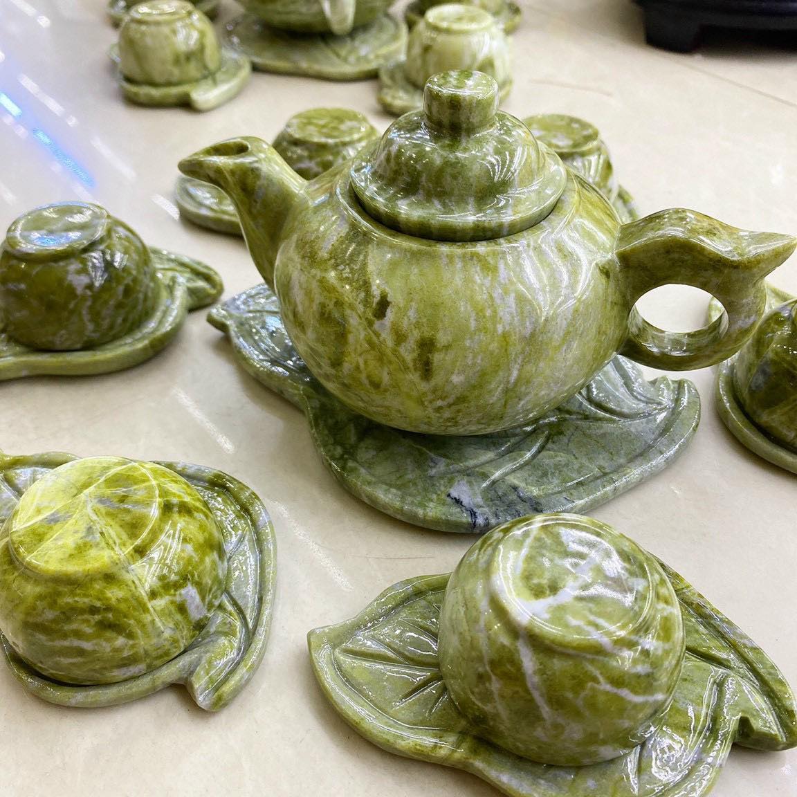 Chất liệu: Đá ngọc Serpentine Bộ sản phẩm gồm: 7 dĩa, 6 ly và 1 ấm trà Dùng để uống trà hoặc làm quà biếu tặ