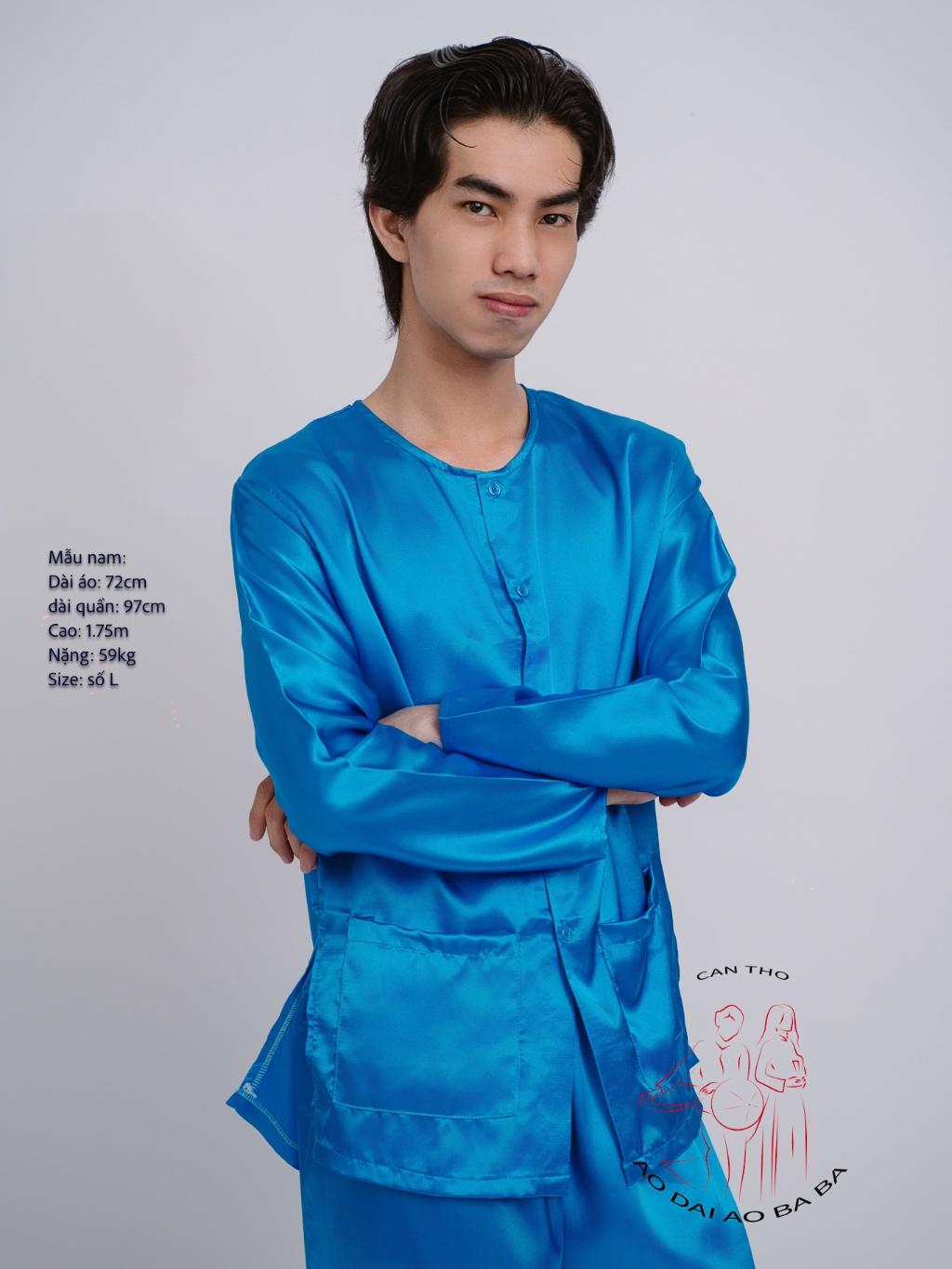 ✨Bộ áo bà ba Nam Phi bóng xanh dương- Có bộ bà ba Bigsize- may sỉ bà ba toàn quốc - May bộ bà ba theo yêu cầu