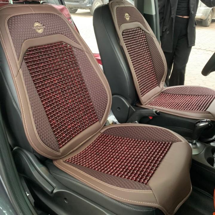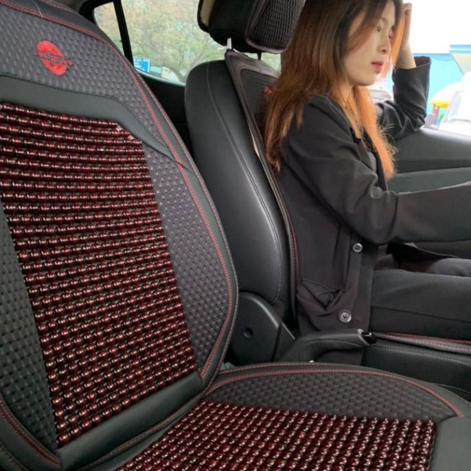 Bộ áo ghế ô tô lót liền hạt gỗ da cao cấp phủ 1 ghế trước, có đan hạt gỗ chống nóng, massage lưng