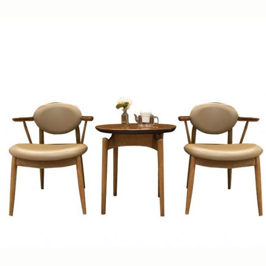 Bộ bàn trà Jang In - Latte Moka mặt tròn màu gỗ nâu 2 ghế