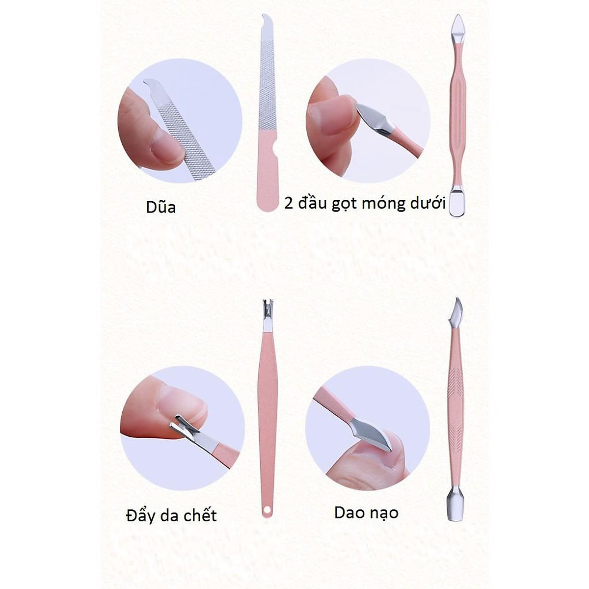 Bộ Hộp Phụ Kiện Làm Nail Bấm Cắt Móng Tay Cắt Da Chết Gồm 18 Chi Tiết Chất Liệu Hợp Kim Có Hộp Đựng Màu Hồng Pastel