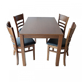 Mô tả sản phẩm - Kích thước bàn 1,2m*75cm, cao 75cm - Kích thước ghế 40*43*80cm - Chất liệu gỗ cao su tự nhiên, chất liệu nệm: simili - Mặt bàn gỗ phủ malamin giả