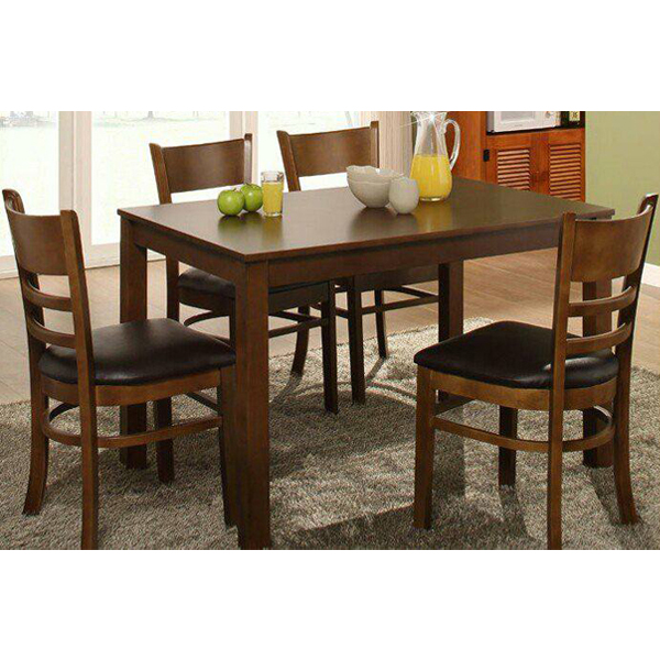 được làm từ gỗ cao su phủ verneer xoan đào sang trọng và hiện đại theo phong cách Âu - Mỹ. Bộ bàn ăn đạt tiêu chuẩn xuất khẩu vào thị trường Mỹ