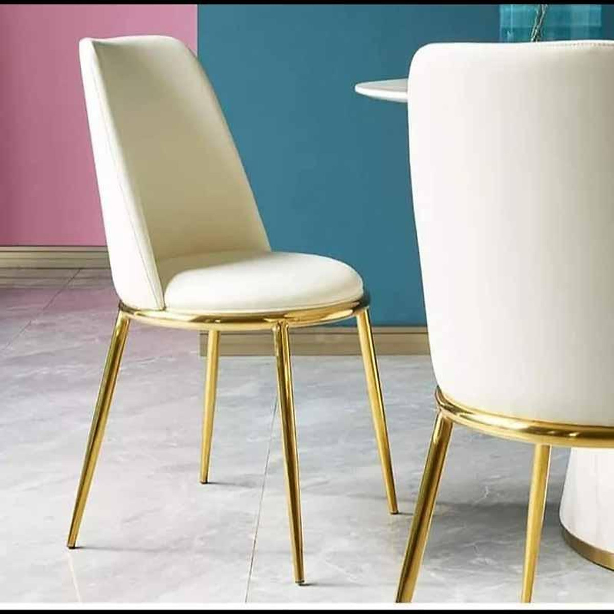 Ghế nệm bọc da simili chân sắt mạ vàng.