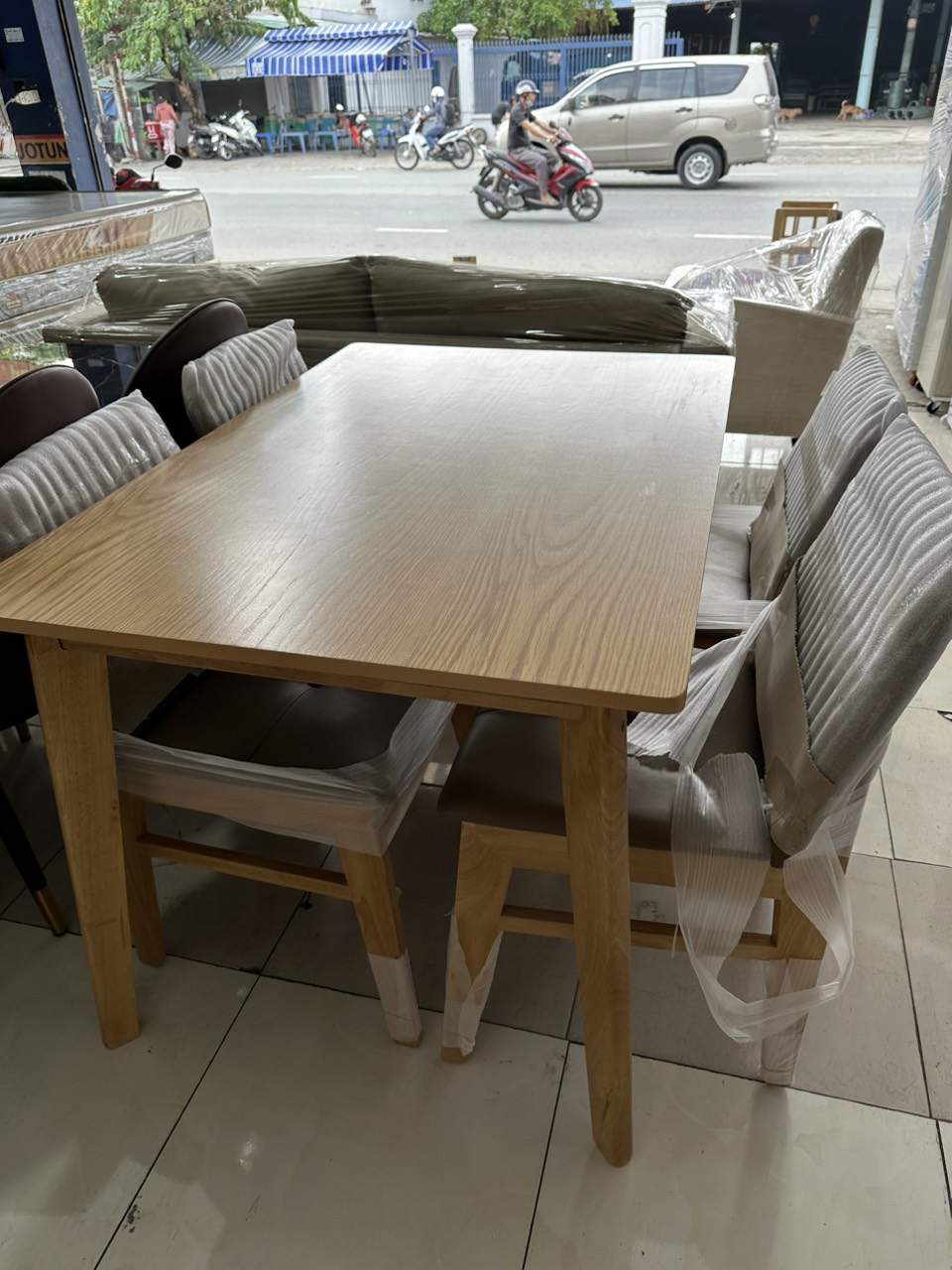*** Quý khách hàng vui lòng chọn sản phẩm nhà bán JUNO SOFA để nhận được sản phẩm đúng với chất lượng *** Kích thước:1.2m x 80cm (bàn) Số ghế: 4 ghế ( có thể đặt