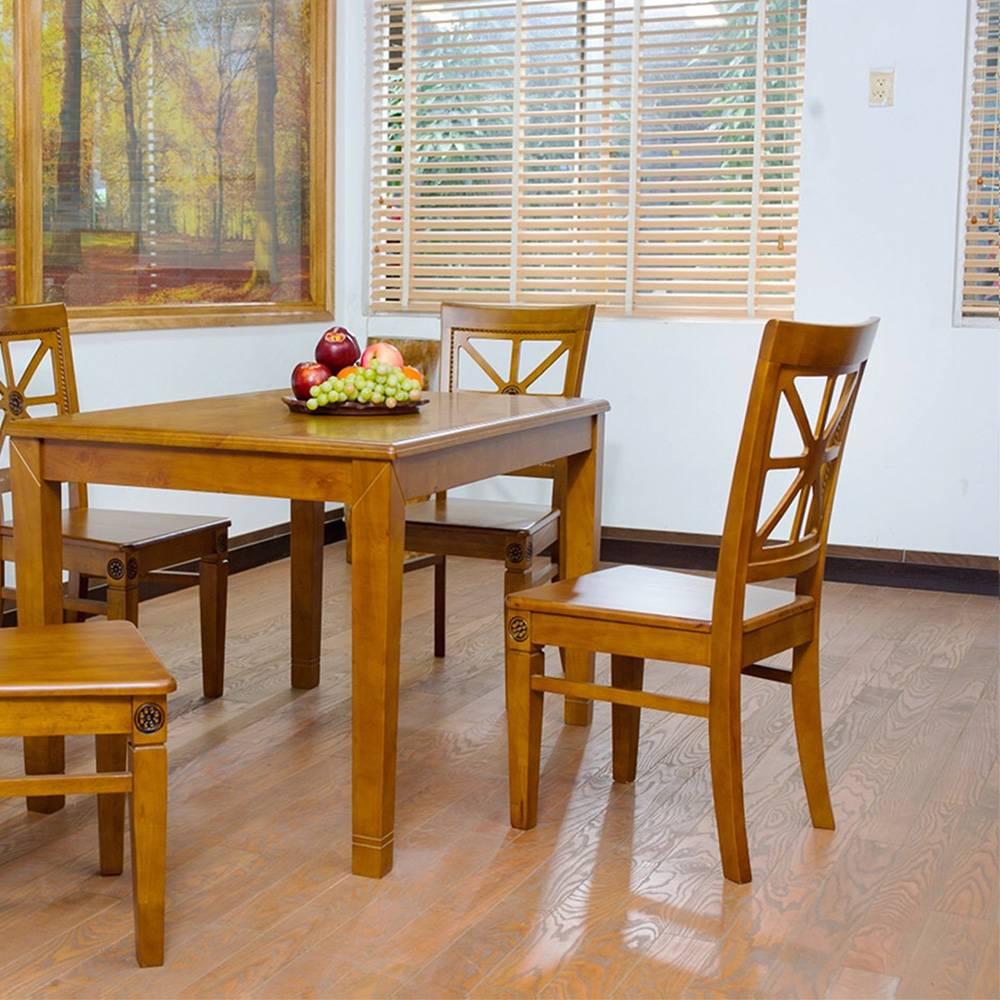 Mô tả sản phẩm - Kích thước bàn 1,2m*80cm, cao 75cm - Kích thước ghế 46*43*80cm - Chất liệu gỗ cao su tự nhiên, chất liệu nệm: simili - Mặt bàn gỗ hdf lỗi xanh