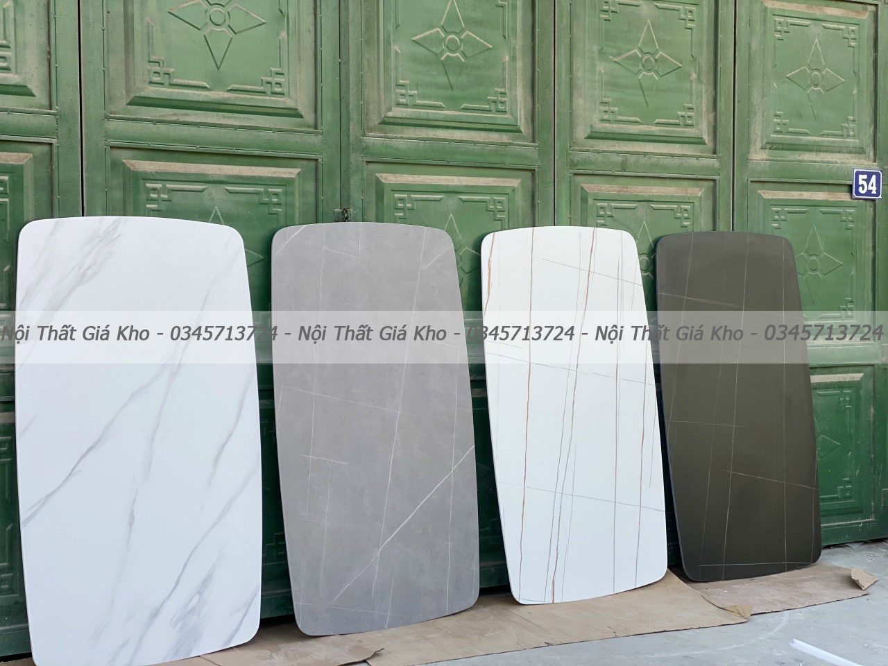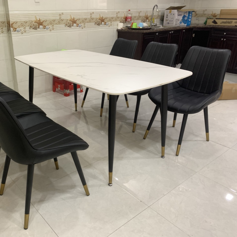 Bàn ăn đá phiến mặt đá ceramic, chân sắt sơn tĩnh điện bọc núm đồng cao cấp
