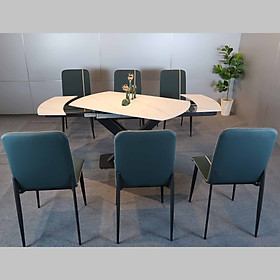 Bộ bàn ăn đá phiến 6 ghế với nhiều màu tùy chọn, giúp bạn dễ dàng chọn được màu sắc ưng ý và phù hợp với thiết kế nội thất trong nhà. Ngoài ra, mẫu bàn này có kích thước mở ra 1m8, khép lại 1m2, tạo thành bộ bàn ăn 4 ghế, 6 ghế, giúp bạn tiết kiệm được diện tích và phù với với nhu cầu của gia đình khi nhà có khách bởi kích thước bàn khá rộng.