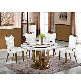 Bộ bàn ăn tròn mặt đá xoay nhập khẩu-- Nội Thất Chất Lượng 077.596.1234