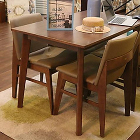 Mô tả sản phẩm - Kích thước bàn 1,2m*80cm, cao 75cm - Kích thước ghế 46*43*80cm - Chất liệu gỗ cao su tự nhiên, chất liệu nệm: simili - Mặt bàn gỗ hdf lỗi xanh