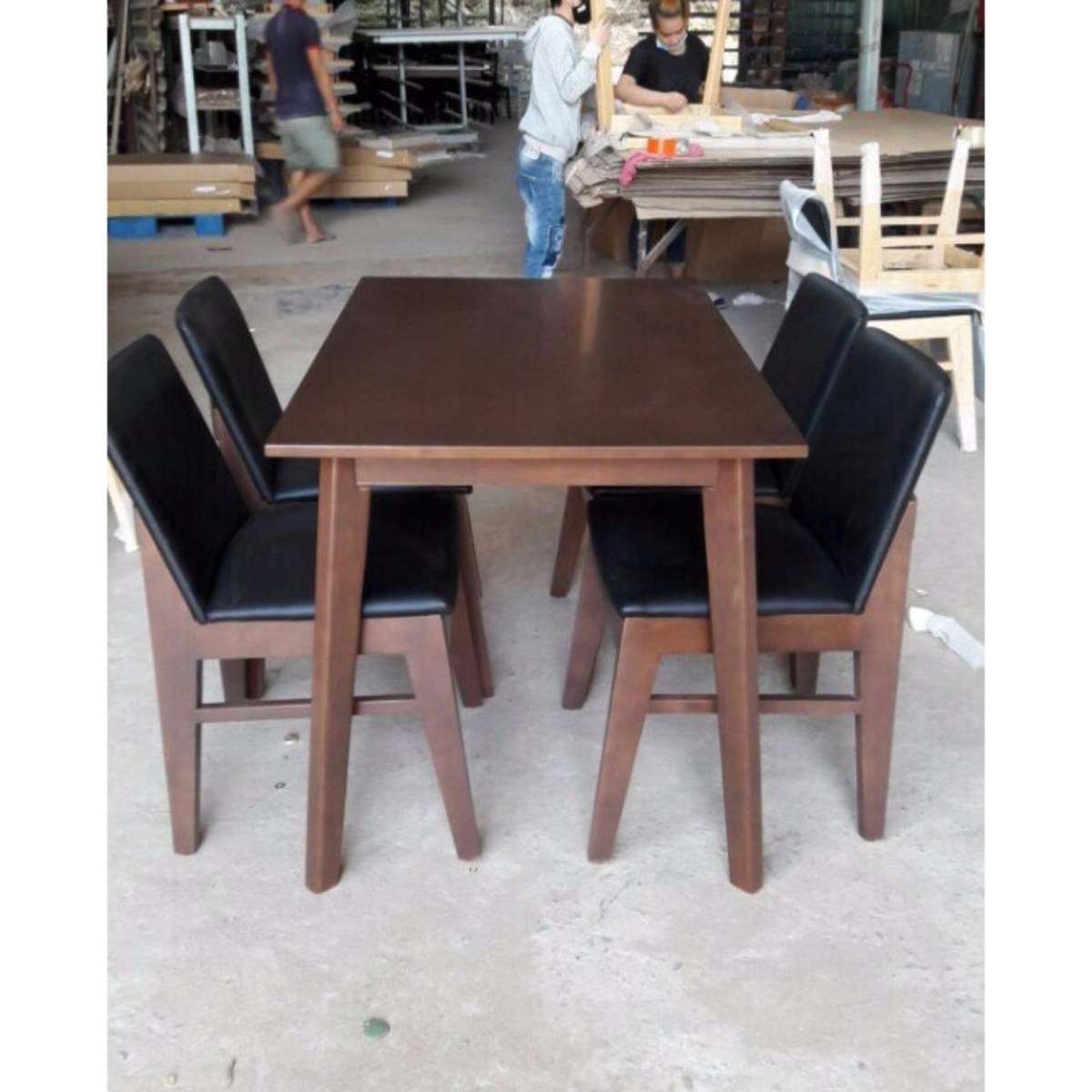 Mô tả sản phẩm - Kích thước bàn 1,2m*75cm, cao 75cm - Kích thước ghế 45*45*80cm - Chất liệu gỗ cao su tự nhiên, chất liệu nệm: simili - Mặt bàn HDF Lỗi xanh -