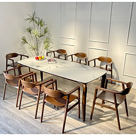 Được sản xuất 100% từ chất liệu gỗ tự nhiên. Mặt bàn đá ceramic. Đây là dòng bàn ăn được ưa chuộng do thiết kế sang trọng, đẹp và vô cùng tinh tế. Bên cạnh