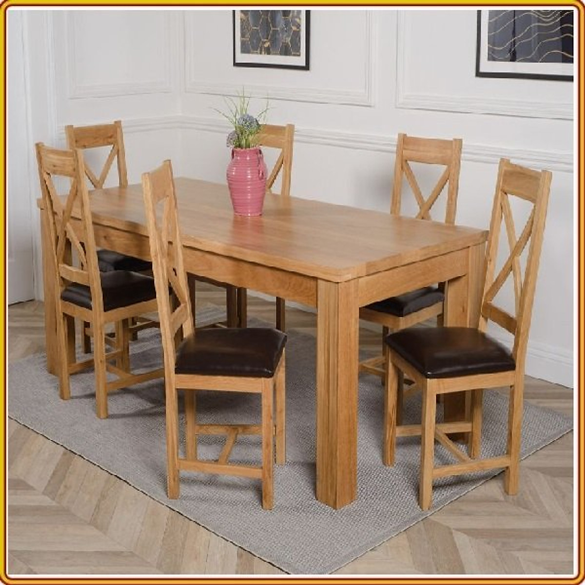 ✨Bộ bàn ăn Rustic Oak bàn 1m6, kèm 6 ghế juno sofa ( Vàng Gỗ Tự Nhiên)