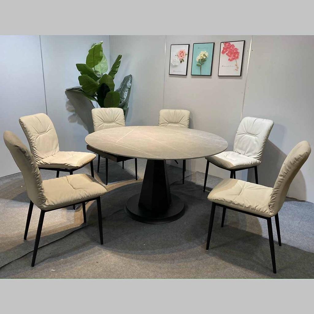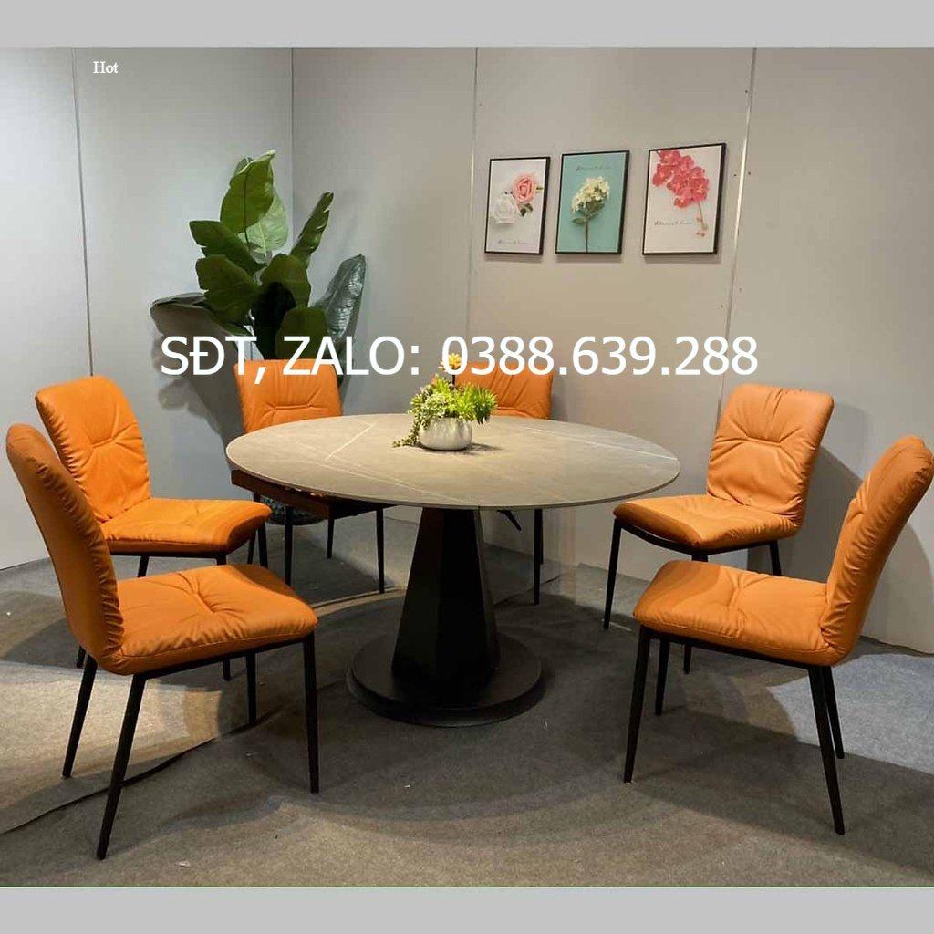 Bộ bàn ăn tròn mặt đá nhập khẩu 1M3 6 ghế - BÀN ĂN GIÁ RẺ Hotline: 0788.050.060