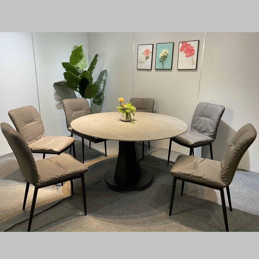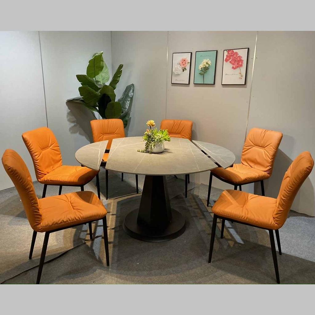 Bộ bàn ăn tròn xoay 2 mặt đá phiến Ceramic kèm ghế monet - noithatgiakho.com