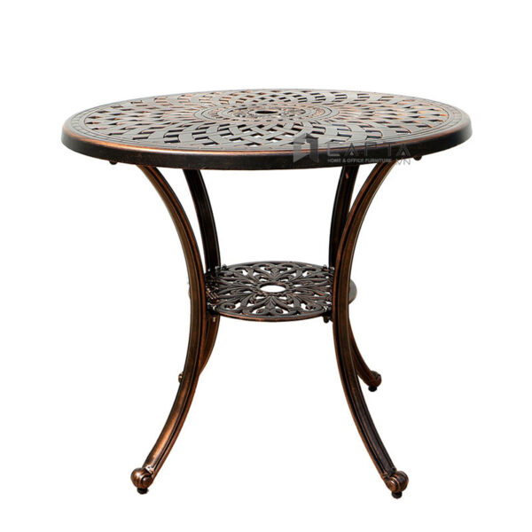Bàn tròn cafe sân thượng ngoài trời màu đồng cổ điển Bàn nhôm đúc cao cấp bền đẹp HCM TE2025-65A Bàn nhôm đúc bền bỉ, không bị gỉ sét rất thích hợp sử dụng ngoài