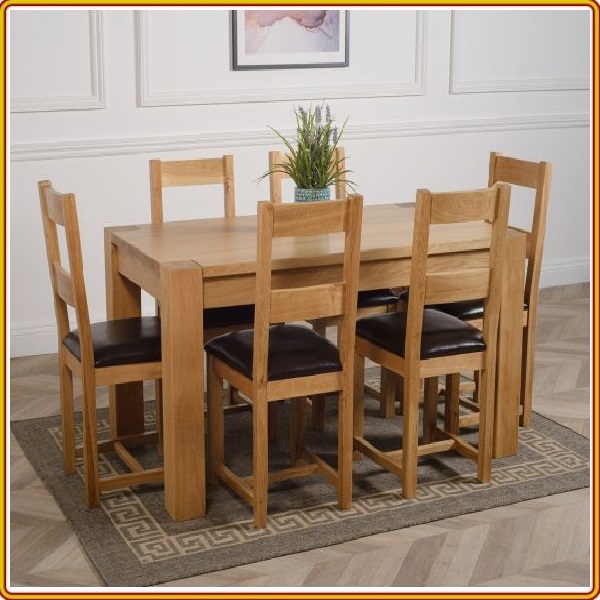 được làm từ gỗ sồi sang trọng và hiện đại, thiết kế đơn giản theo phong cách Âu - Mỹ. Bàn ăn đạt tiêu chuẩn xuất khẩu vào thị trường Mỹ