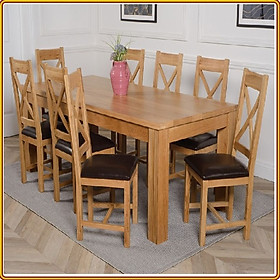 được làm từ gỗ sồi sang trọng và hiện đại, thiết kế đơn giản theo phong cách Âu - Mỹ. Bàn ăn đạt tiêu chuẩn xuất khẩu vào thị trường Mỹ