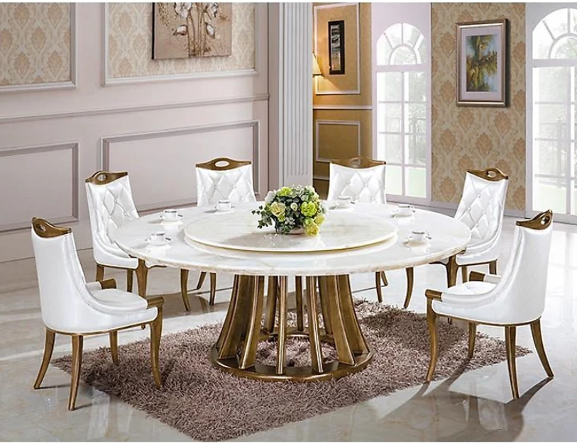 ✨Bộ bàn ghế phòng ăn mặt đá tròn nhập khẩu Tundo HFC-BBA910-13 cao cấp
