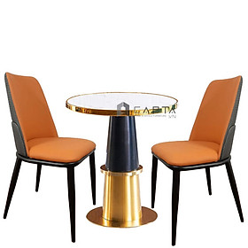 Bộ bàn ghế sảnh tiếp khách chân mạ màu vàng Bộ bàn tròn mặt đá 2 ghế có nệm hiện đại HCM SL BEACON-06EC / ECO 14A