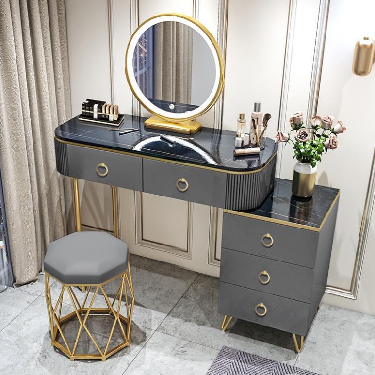 ✨Bộ bàn ghế trang điểm: Bàn phấn 2 ngăn mặt đá chân tủ 3 ngăn + Ghế + Gương