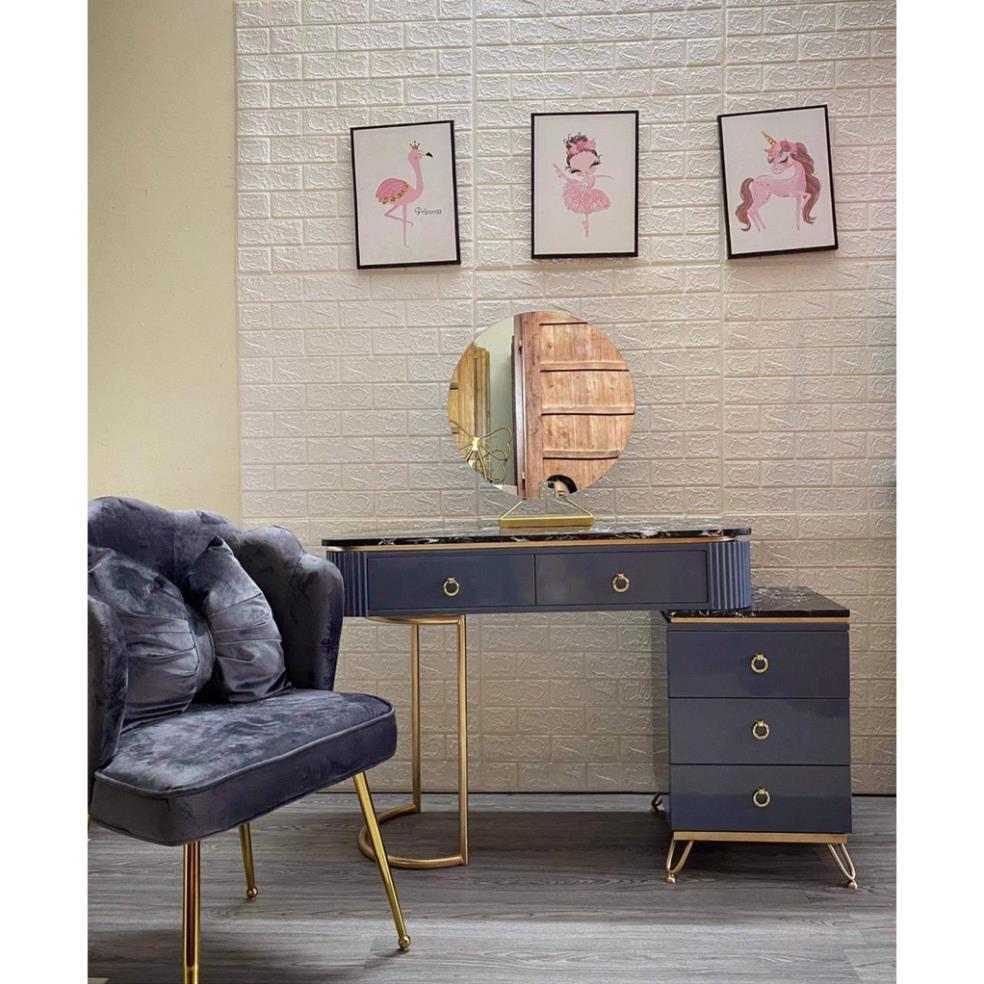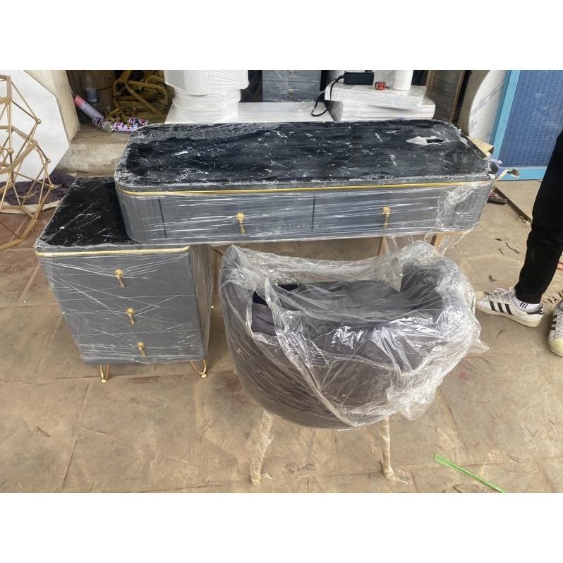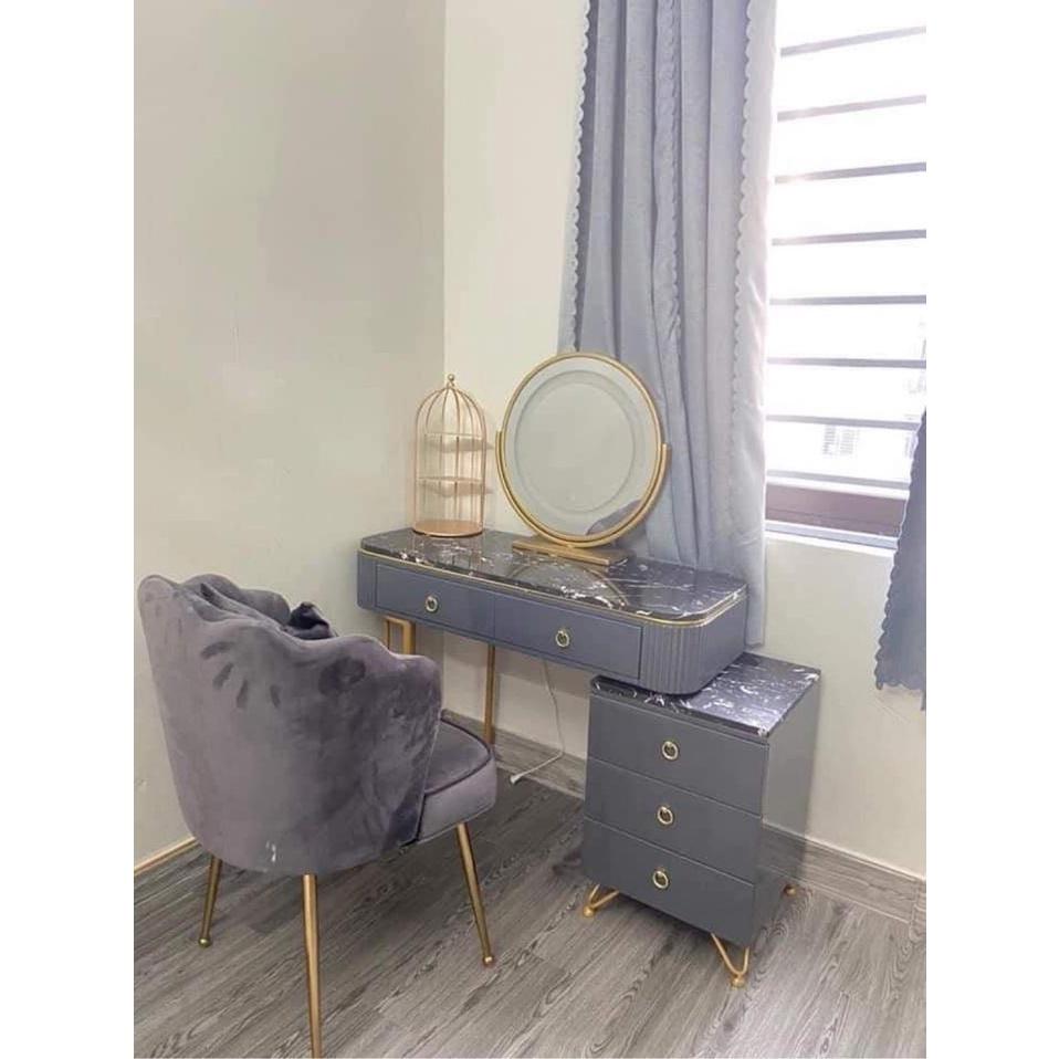 ✨Bộ bàn ghế trang điểm: Bàn phấn 2 ngăn mặt đá chân tủ 3 ngăn + Ghế + Gương