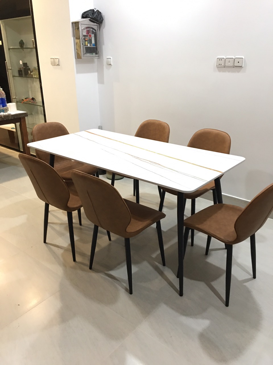 ✨Bộ bàn mặt đá cao cấp Juno sofa 1m6 x 80 cm và 6 ghế da