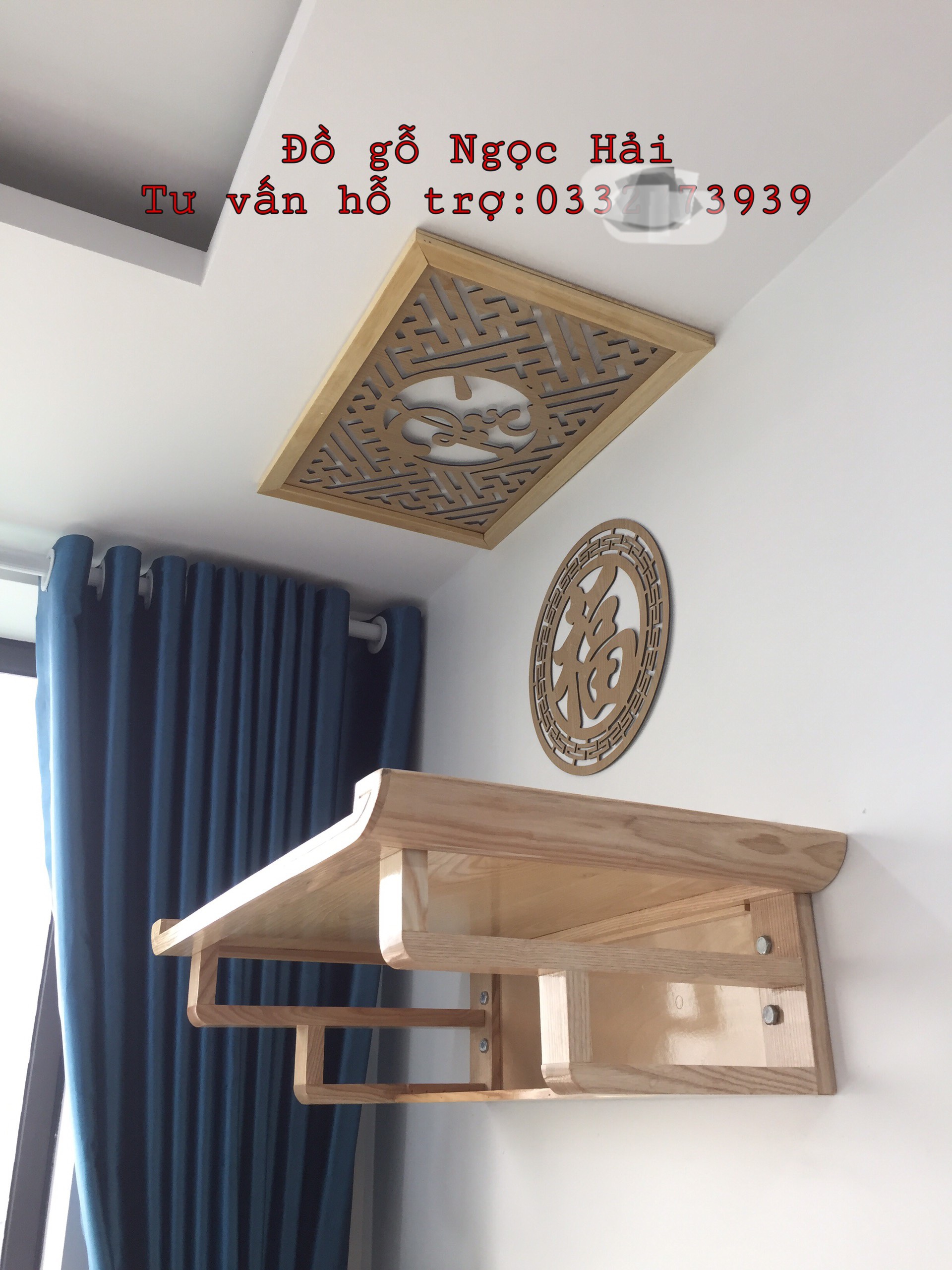 ✨Bộ bàn thờ chung cư bằng gỗ sồi + ám khói +chữ phúc hãy chữ bất kỳ bằng gỗ sồi nga
