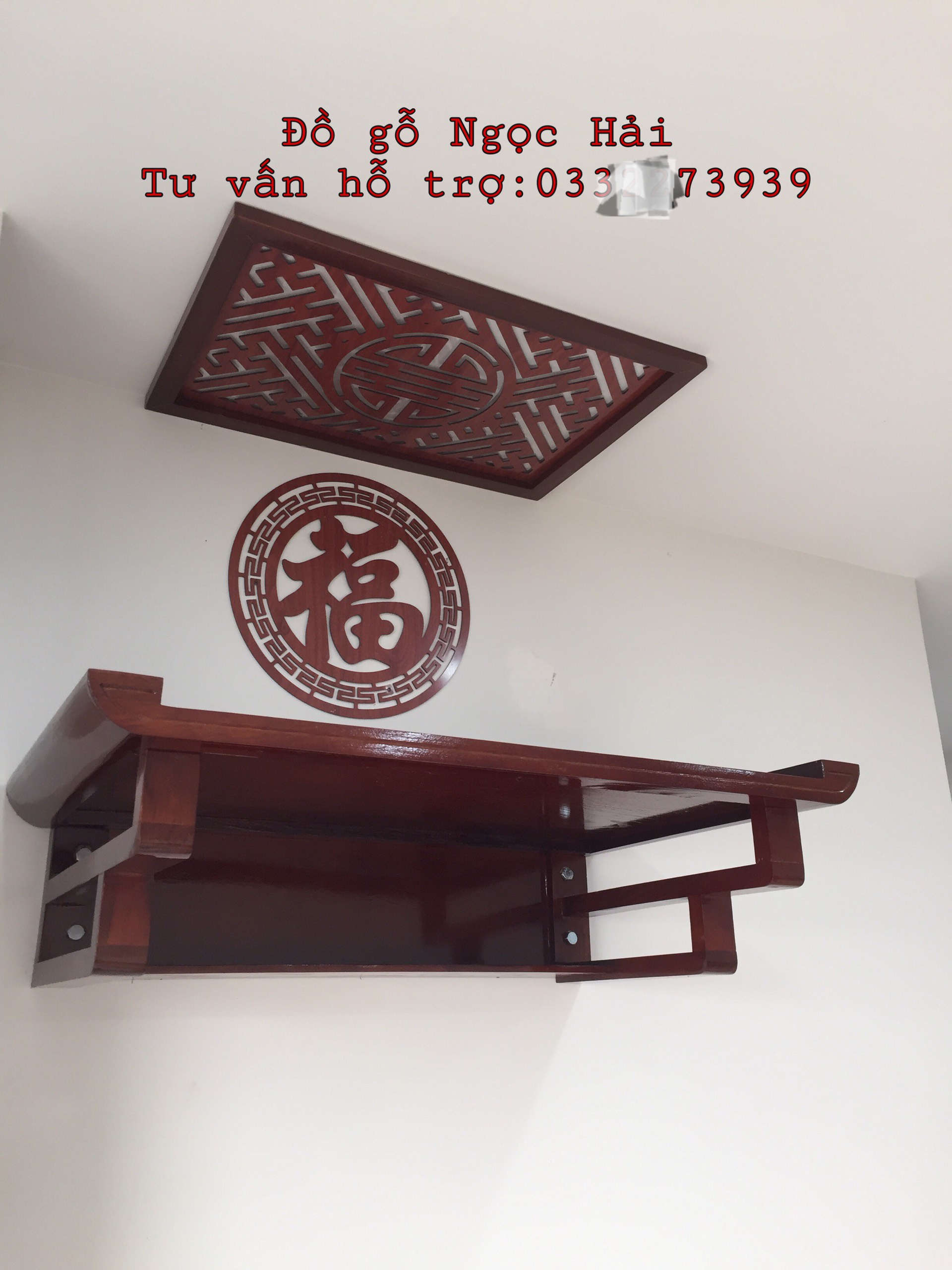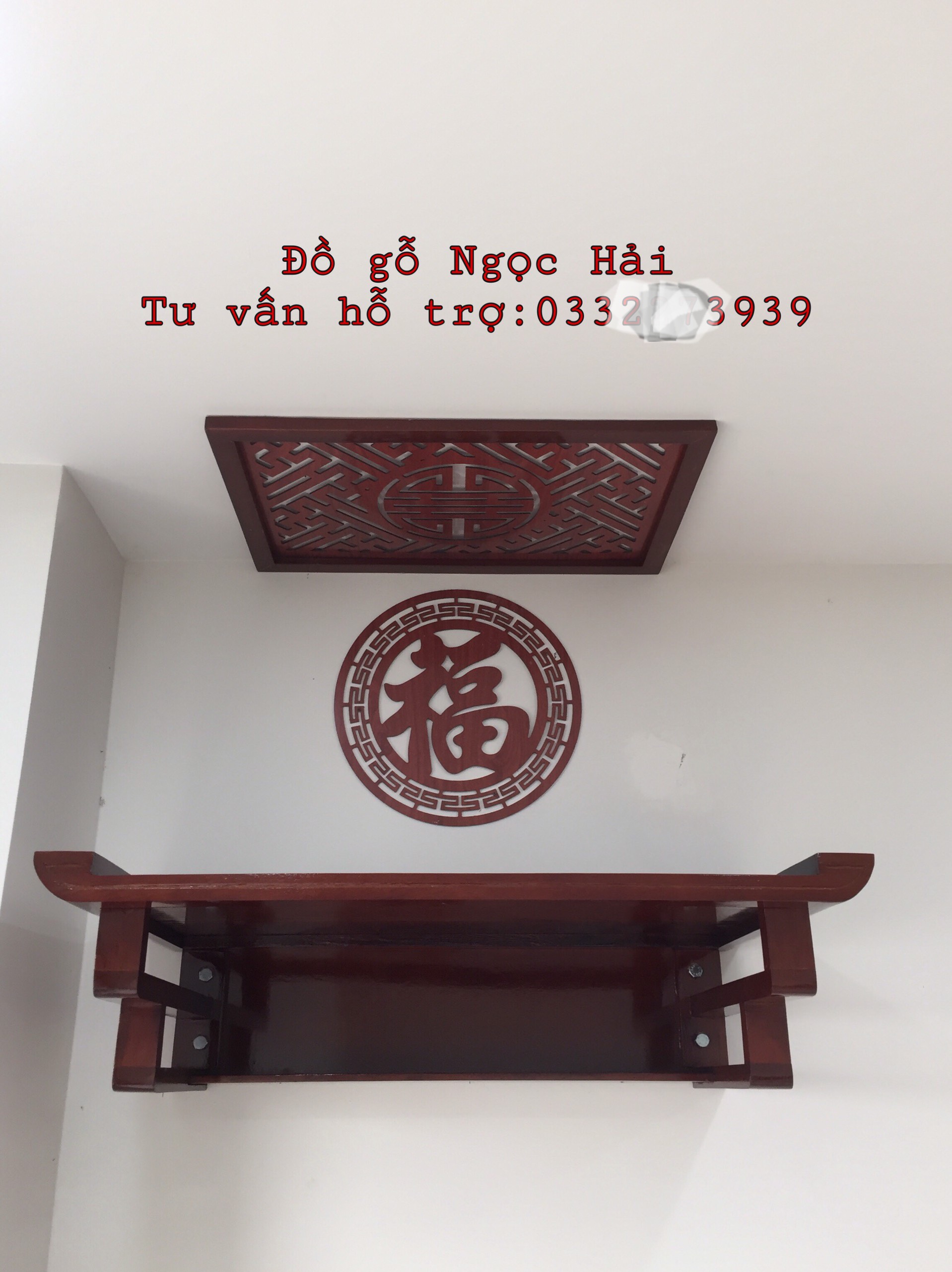 ✨Bộ bàn thờ chung cư kt 69cm bằng gỗ sồi + ám khói + chữ thọ hay chữ phúc