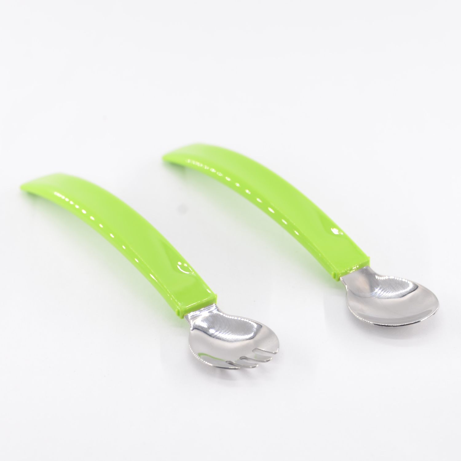 • Thìa và dĩa được thiết kế đầu bo tròn an toàn, và vừa vặn với khuôn miệng sử dụng vừa vặn với khuôn miệng và không gây tổn thương nướu lợi của trẻ khi sử dụng. Tay cầm bản lớn có độ cong tự nhiên và độ dài thích hợp để bé cầm nắm chắc chắn và tập ăn dễ dàng.