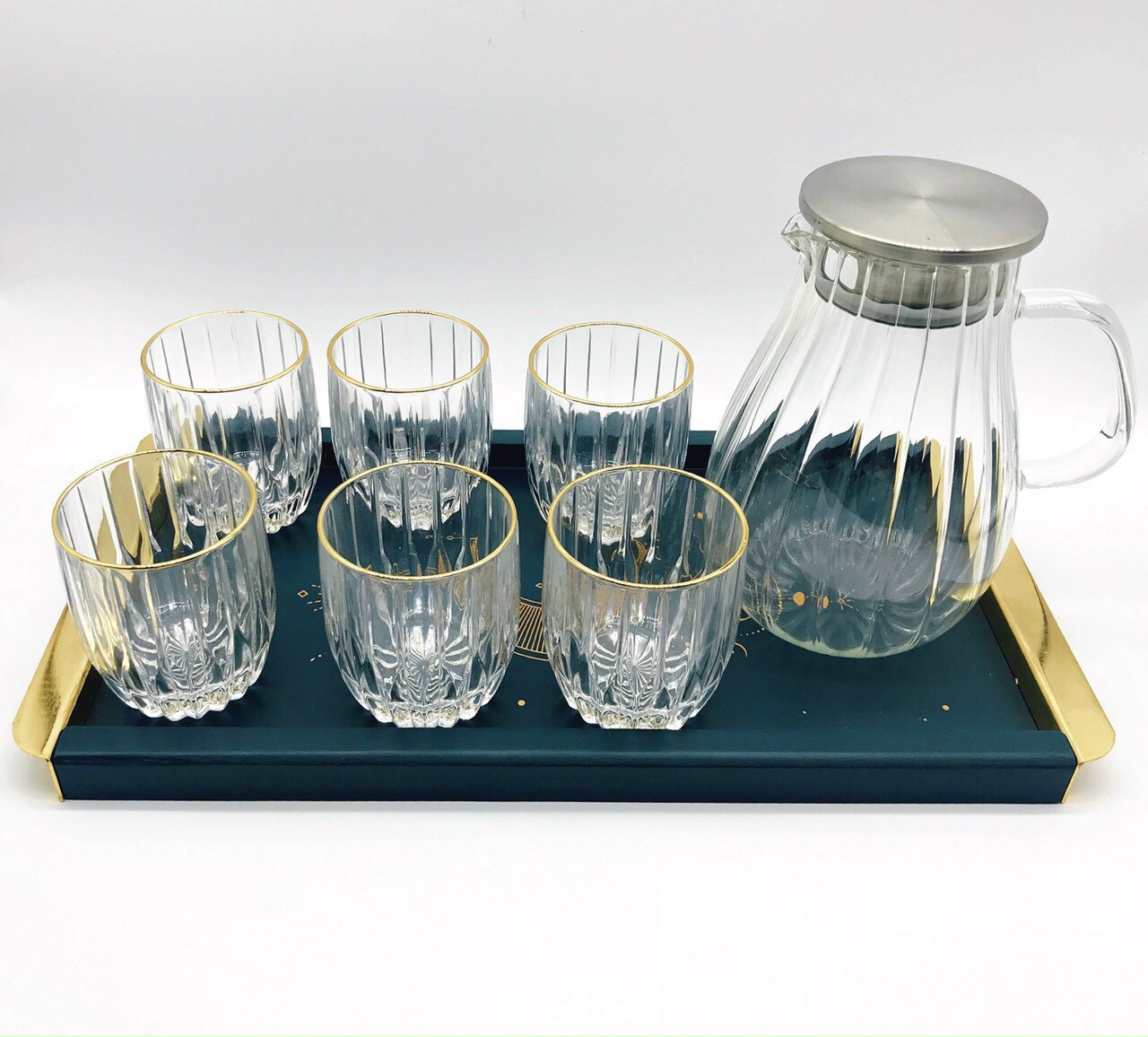 Bộ bình 6 cốc thủy tinh chịu nhiệt mạ vàng cao cấp