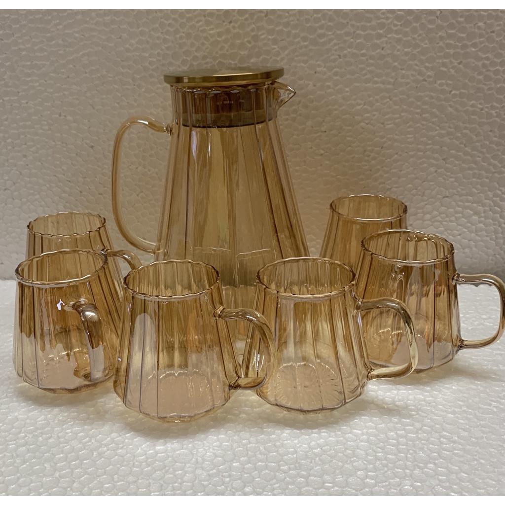 ✨BỘ BÌNH ĐỰNG NƯỚC UỐN KÈM 6 CỐC THỦY TINH MÀU VÀNG GOLD CHỊU NHIỆT CAO CẤP