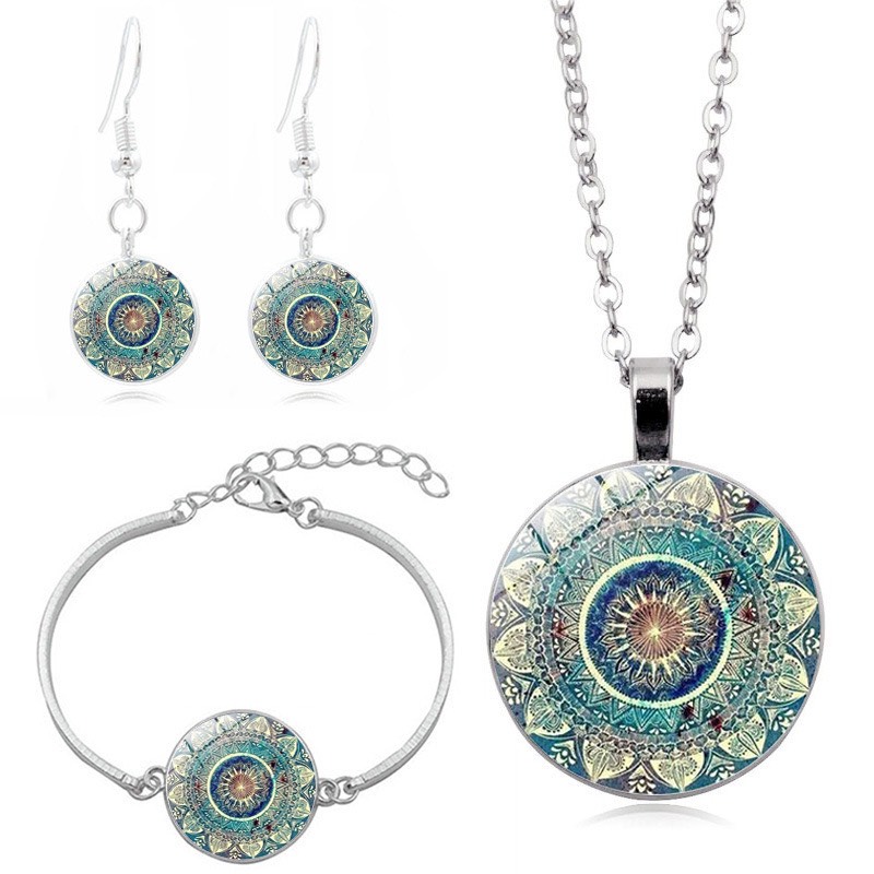 ✨BỘ BÔNG TAI , DÂY CHUYỀN VÀ VÒNG TAY HÌNH HOA MANDALA BIỂU TƯỢNG PHẬT GIÁO