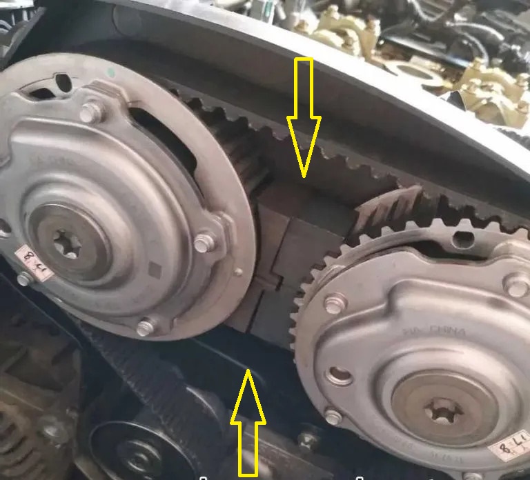 - Cố định trục cam, lắp đai dẫn động (hoặc xích) vào