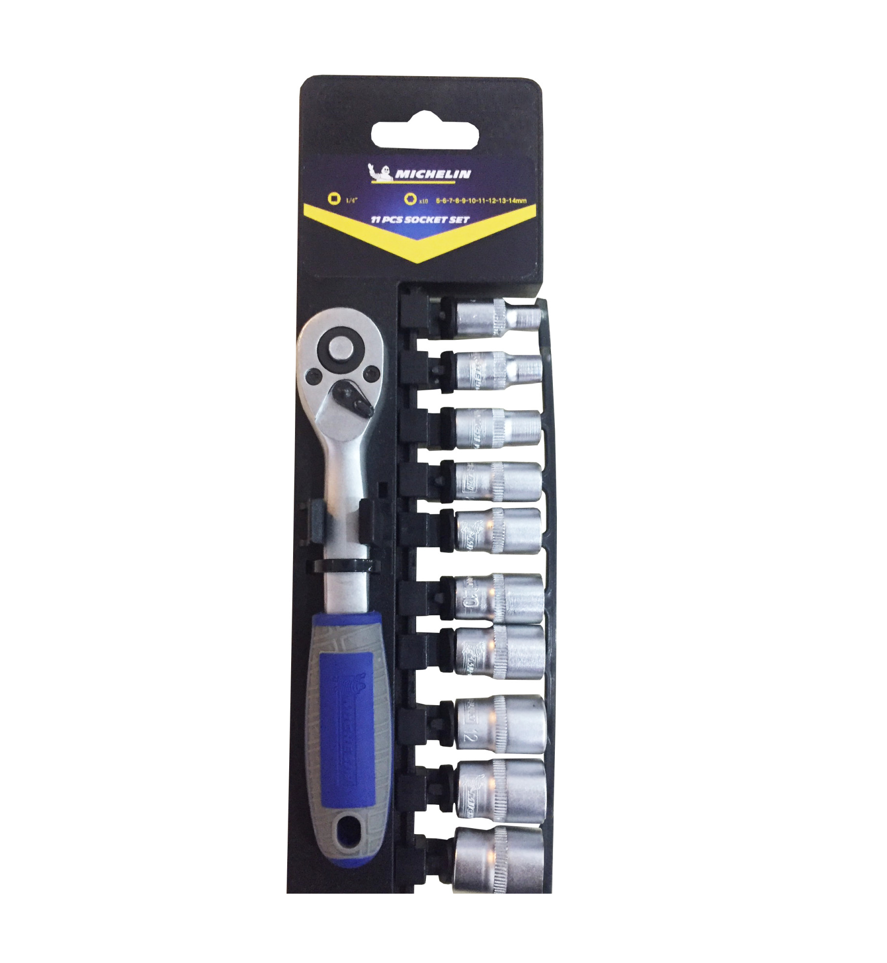 Bộ 17 ổ cắm 1/2" Bao gồm: 12 ổ cắm Dr 1/2": 10-11-12-13-14-15-16-17-18-19-21-24mm 1 tay cầm ratchet tháo lắp nhanh 1/2" 72T 2 thanh nối dài Dr 1/2": 5"(125mm) & 10"(250mm) 1 ổ cắm bugi: