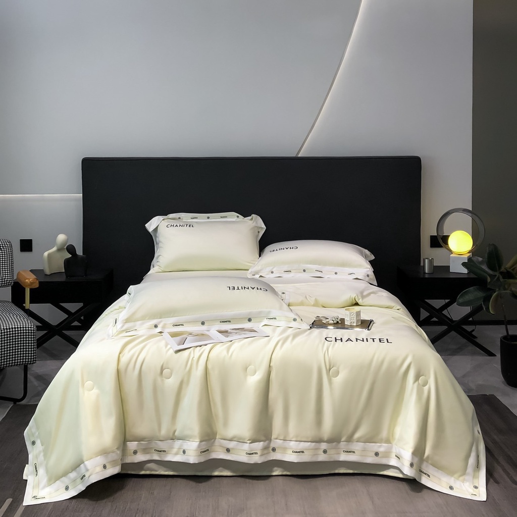 Bộ chăn ga Phi Lụa chăn hè Chanitel - Set 4 món nhập khẩu cao cấp Sản phẩm gồm: 1 CHĂN HÈ CHẦN BÔNG 1 GA BỌC NỆM 2 VỎ GỐI NẰM Các bạn muốn