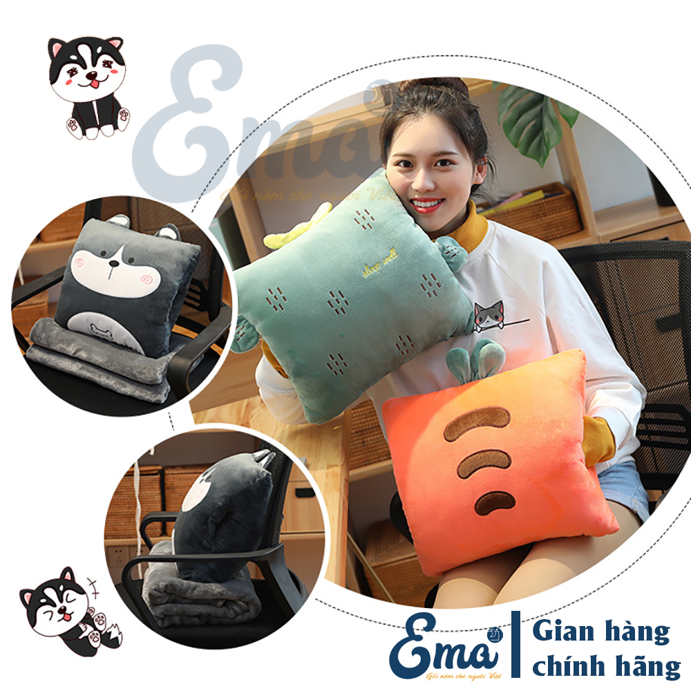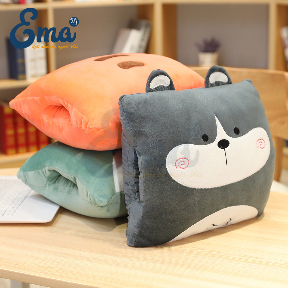 ✨Bộ chăn gối văn phòng 3 trong 1 hình thú dễ thương EMA kèm gối luồn tay giữ nhiệt - Tựa lưng - Ngủ trưa - Gối ôm