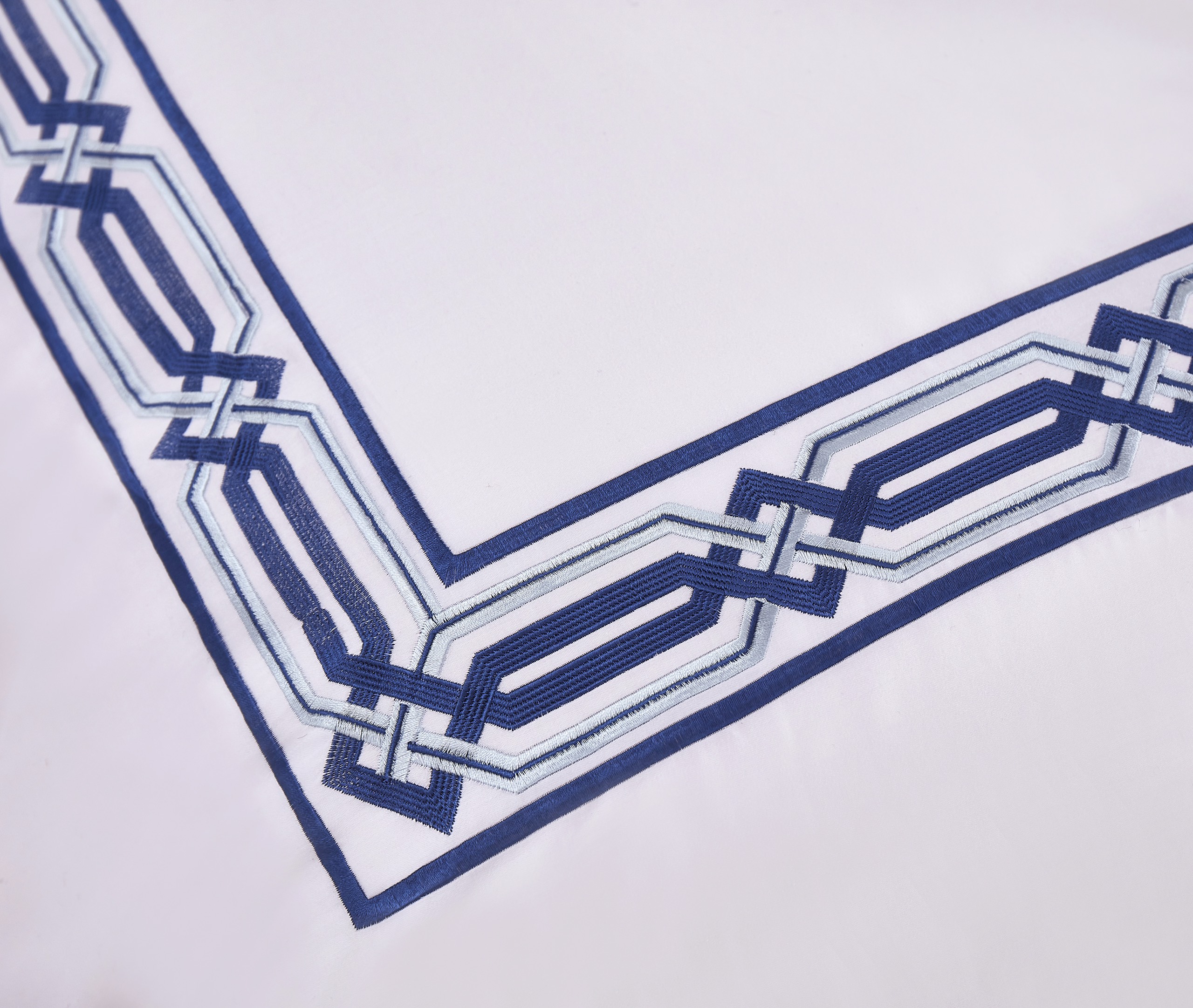 ✨Bộ chăn ra Casa Bello Home - Set Serenity Blue Cotton lụa satin thêu họa tiết thêu 5 món