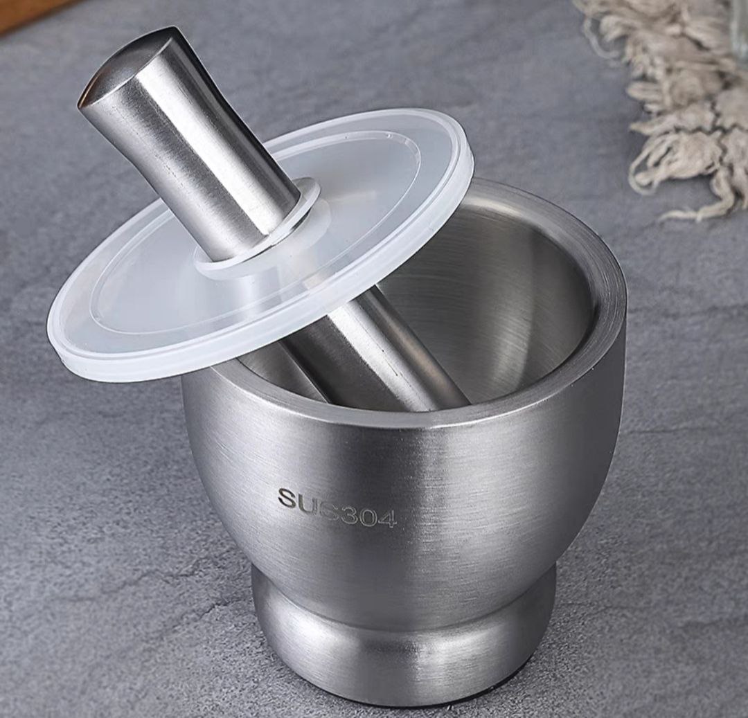 Bộ Chày Cối Inox 304 Có Nắp Đậy, Chày Cối Nguyên Khối Dã Cực Nhuyễn