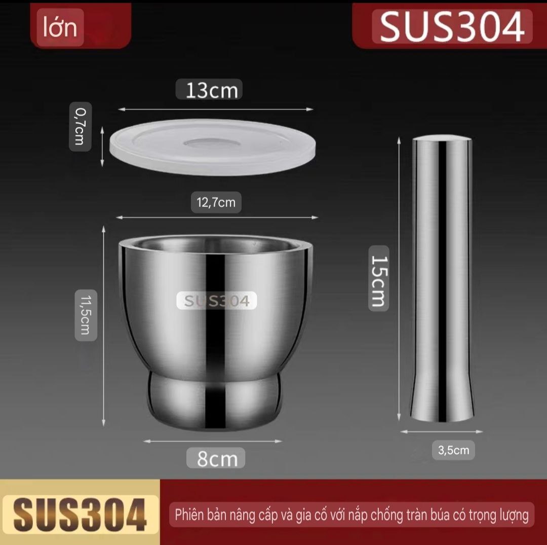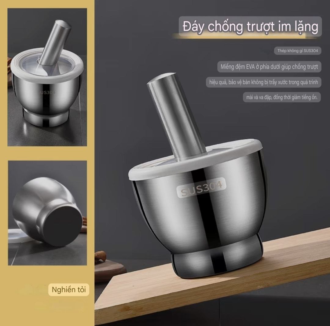 ✅ Inox 304 cao cấp – sáng bóng, chống gỉ, không độc hại, 🌱 an toàn cho sức khỏe. ✅ Nguyên khối CNC tinh xảo – đáy chống trượt, 💪 không lo nghiêng đổ, siêu chắc chắn. ✅ Cối dày – chày nặng tay – giã đầm tay, thao tác mạnh vẫn giữ cân bằng hoàn hảo. ✅ Nắp nhựa đậy kín – 🧼 chống bắn, giữ sạch bếp và đảm bảo vệ sinh. ✅ Giã đa năng: tỏi, ớt, tiêu, gừng, hành, sả, hạt khô… 🌶️🌰🧄 ✅ Xay bột thực phẩm, làm bánh, phục vụ món ăn cầu kỳ 🍰🥣 ✅ Không phản ứng hóa học – không ăn mòn, bảo toàn hương vị 🍃 ✅ Vệ sinh dễ dàng, không bám mùi – bền đẹp như mới 💧🧽 ✅ Thiết kế sang trọng – tinh tế, tôn thêm đẳng cấp cho căn bếp hiện đại 🏡✨ ✅ Đầu tư một lần – dùng trọn đời, không lo hư móp, cong vênh 🛠️🔒
