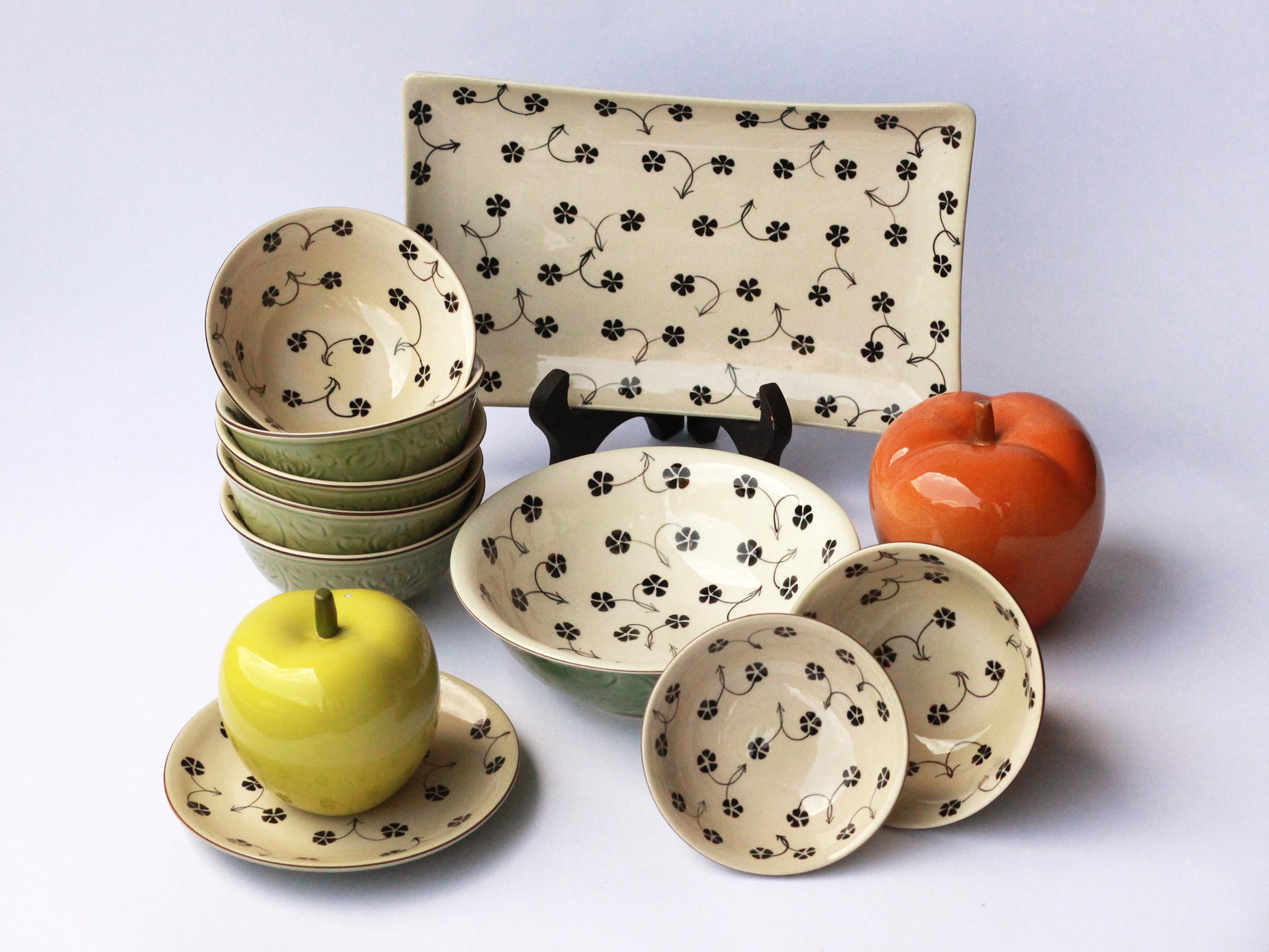 Bộ tô chén đĩa ăn gốm Bát Tràng men xanh vẽ hoa sao là một trong những sản phẩm được yêu chuộng vì nét vẽ tỉ mĩ, tinh tế và mang phong cách hoài cổ xen lẫn, góp phần làm cho món ăn thật ngon hơn và buổi cơm gia đình ấm cúng hơn với bộ chén đĩa gốm.
