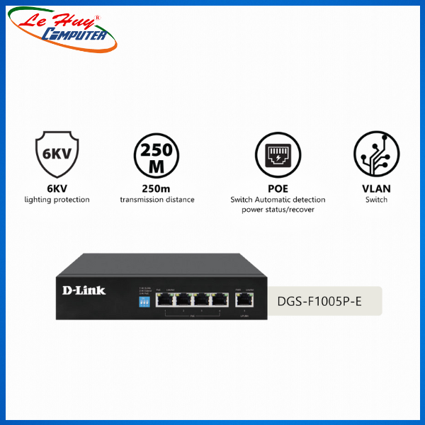 250m PoE Switch hỗ trợ 4 cổng gigabit & 1 cổng uplink(Model : DGS-F1005P-E) cấp nguồn lên đến 250m