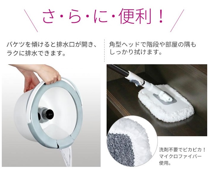 - Thương hiệu: MyJae - Màu sắc: Trắng, Xám - Chất liệu: Thép không gỉ, nhựa, polyester - Kích htước: Chiều dài cây lau: 123cm, Bông lau: 33,5 x 12,5cm, Thùng lau: 41 x 26 x 22