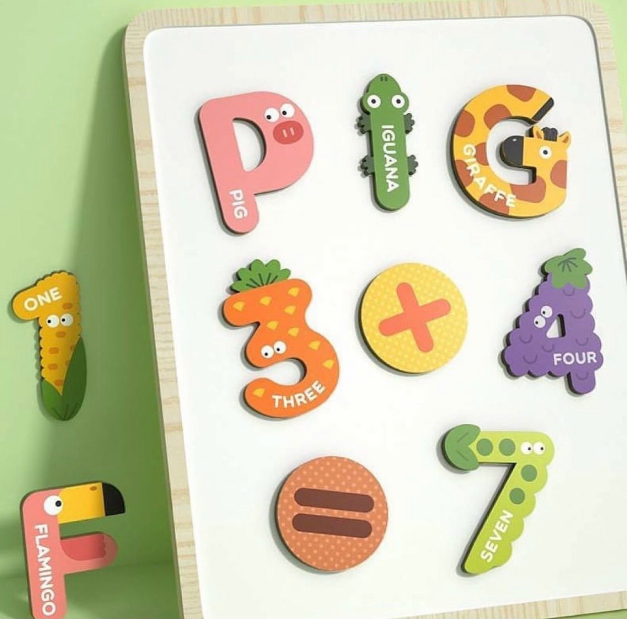 Bộ thẻ bảng chữ cái và số Tiếng Anh bằng gỗ tự nhiên, sơn phủ 3 lớp cao cấp. Chỉ với một bảng chữ cái số a b c duy nhất, cha mẹ cùng bé