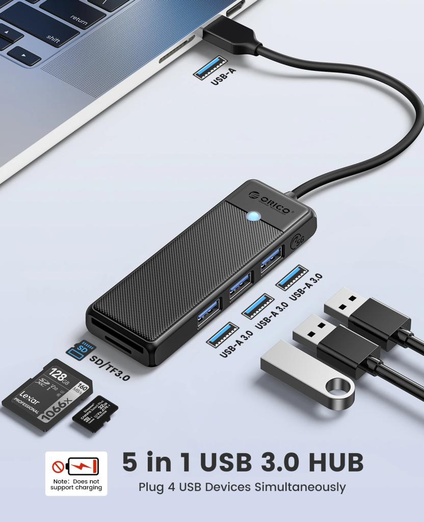 ✨Bộ Chuyển Đổi HUB 1 USB ra 3 cổng USB 3.0 5Gps/ TF/SD 3.0*1 5Gbps PAPW3AT-U3-015 Orico - Hàng Chính Hãng